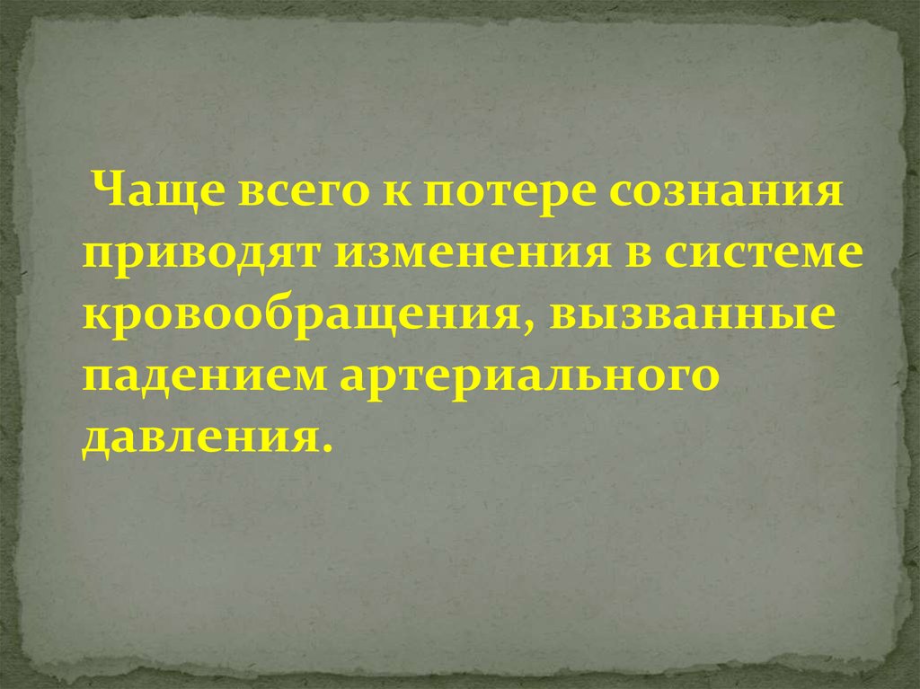 Чаще всего к потере сознанияприводят изменения в системе