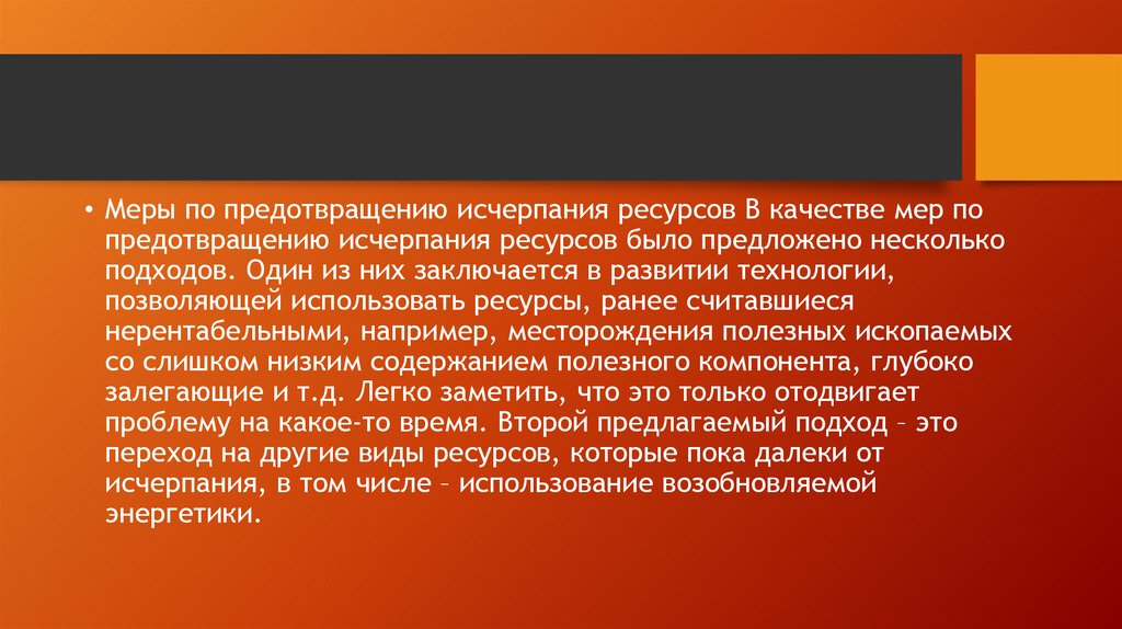 • Меры по предотвращению исчерпания ресурсов В качестве мер попредотвращению исчерпания ресурсов было предложено несколько
