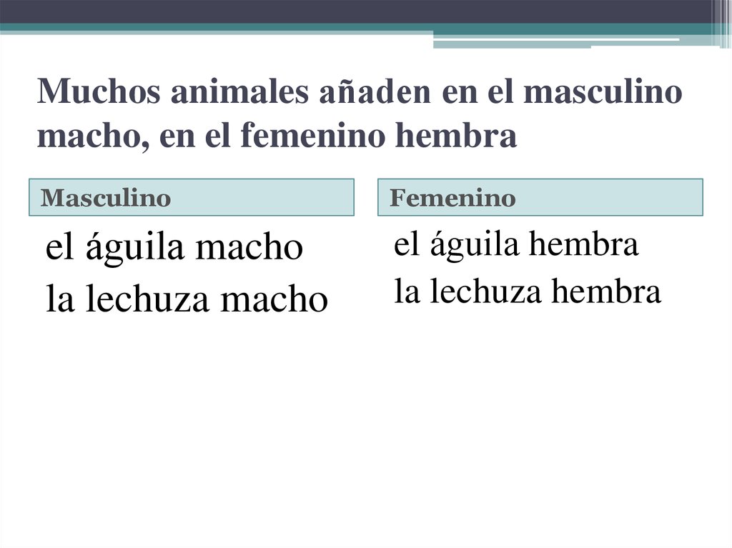 7. Muchos animales añaden en el masculino macho, en el femenino hembra