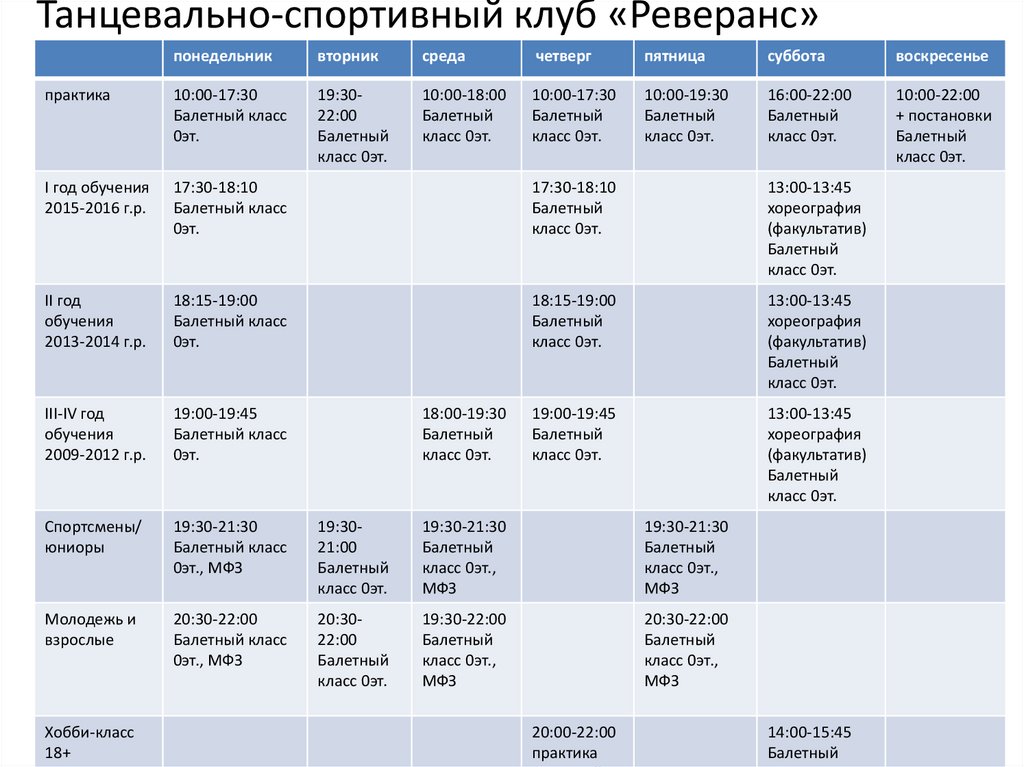 Танцевально-спортивный клуб «Реверанс»понедельник