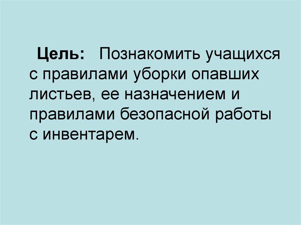 Цель: Познакомить учащихсяс правилами уборки опавших