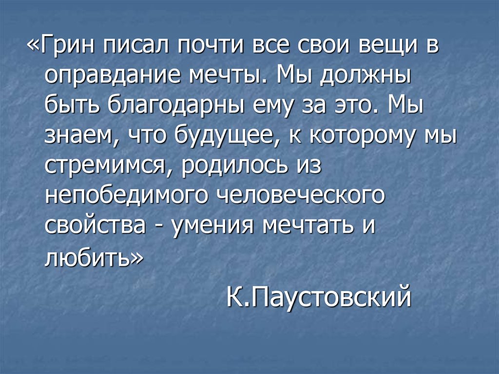 «Грин писал почти все свои вещи воправдание мечты. Мы должны