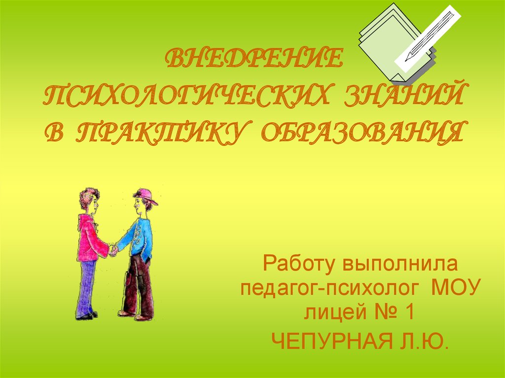 1. ВНЕДРЕНИЕ ПСИХОЛОГИЧЕСКИХ ЗНАНИЙ В ПРАКТИКУ ОБРАЗОВАНИЯ