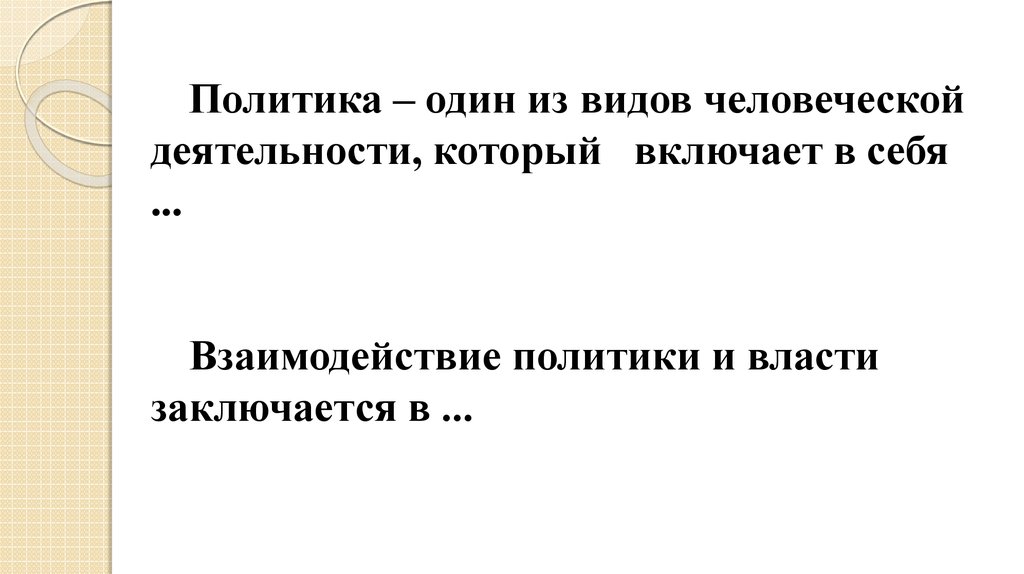 Политика – один из видов человеческойдеятельности, который включает в себя
