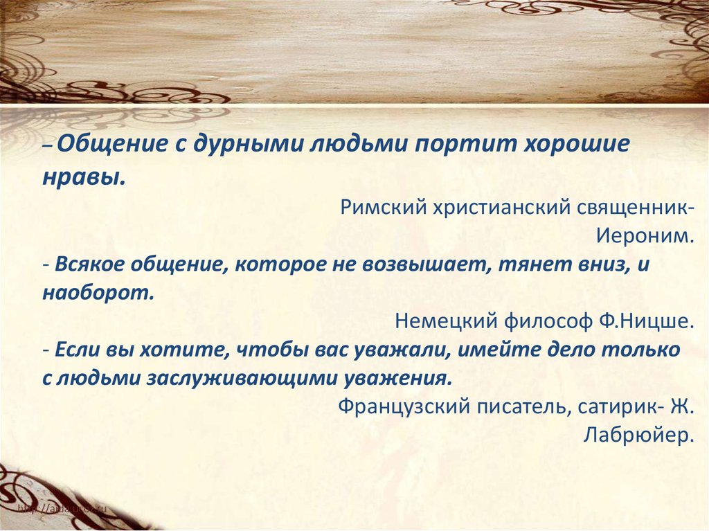 - Всякое общение, которое не возвышает, тянет вниз, и