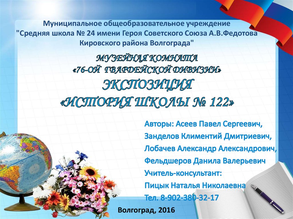 1. МУЗЕЙНАЯ КОМНАТА «76-ой Гвардейской дивизии» Экспозиция «История школы № 122»