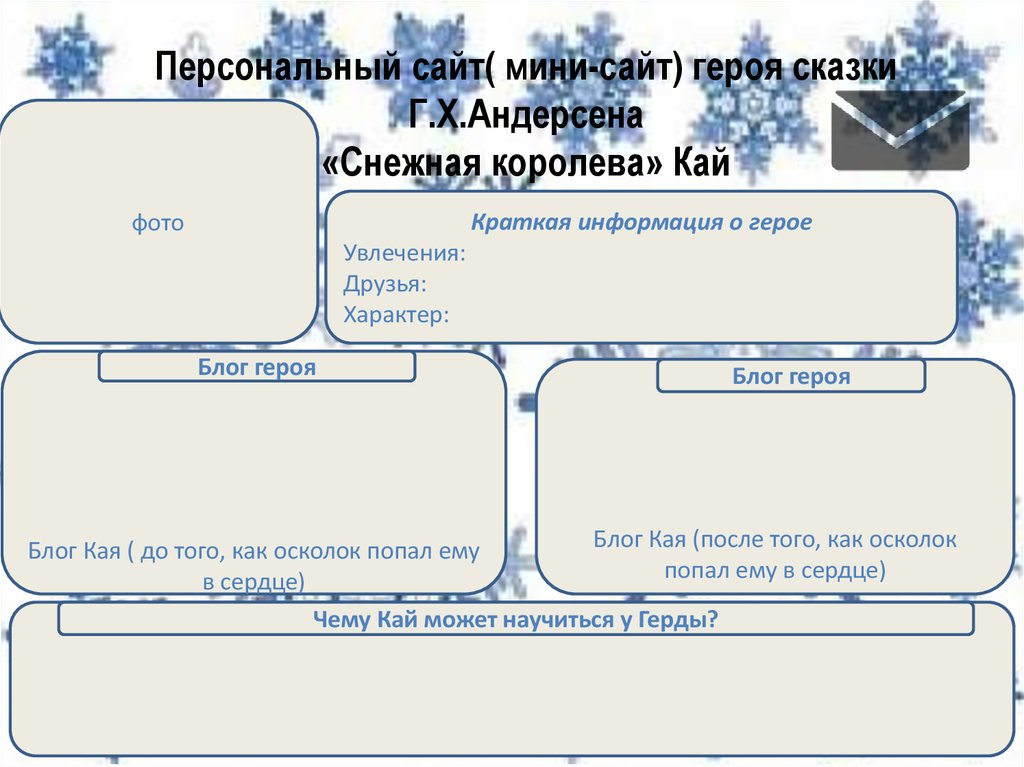 Инструкция по составлению мини-сайтов героев сказки Г.Х. Андерсена «Снежная королева», Кая и Герды