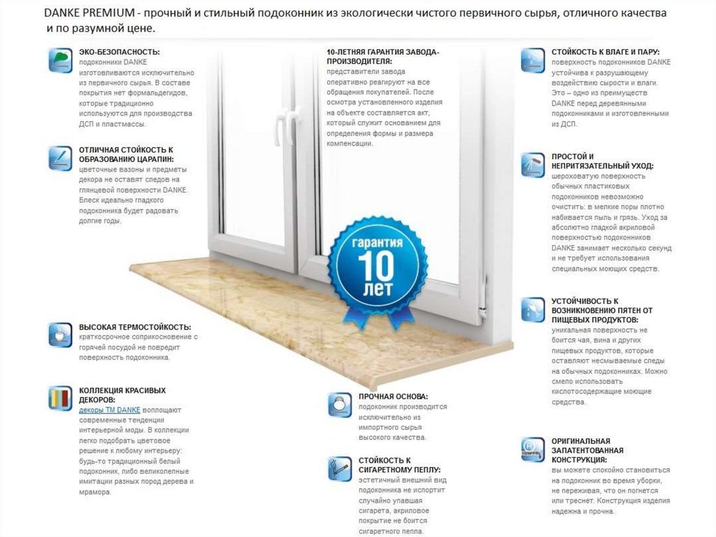 Гарантия на подоконник Standard составляет 10 лет.8.