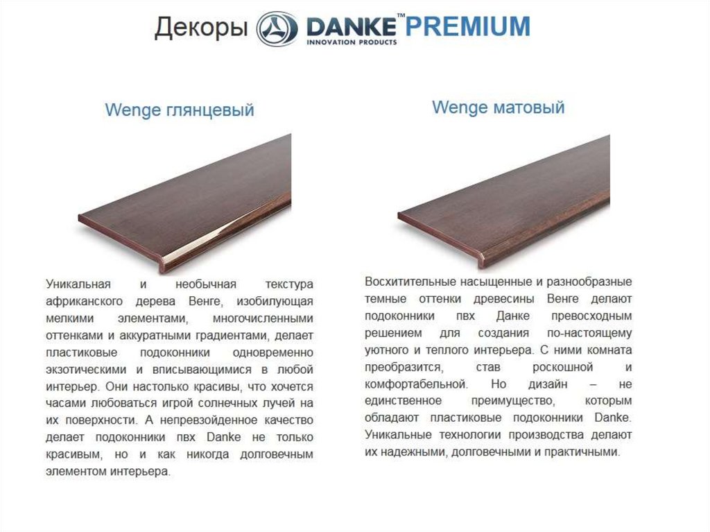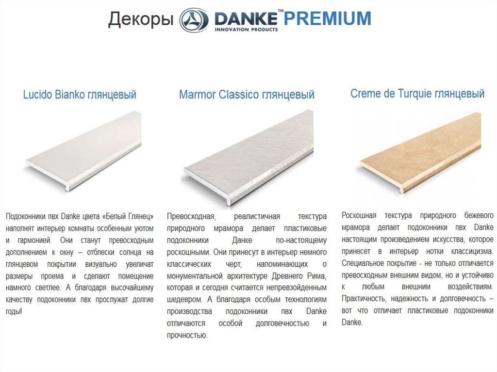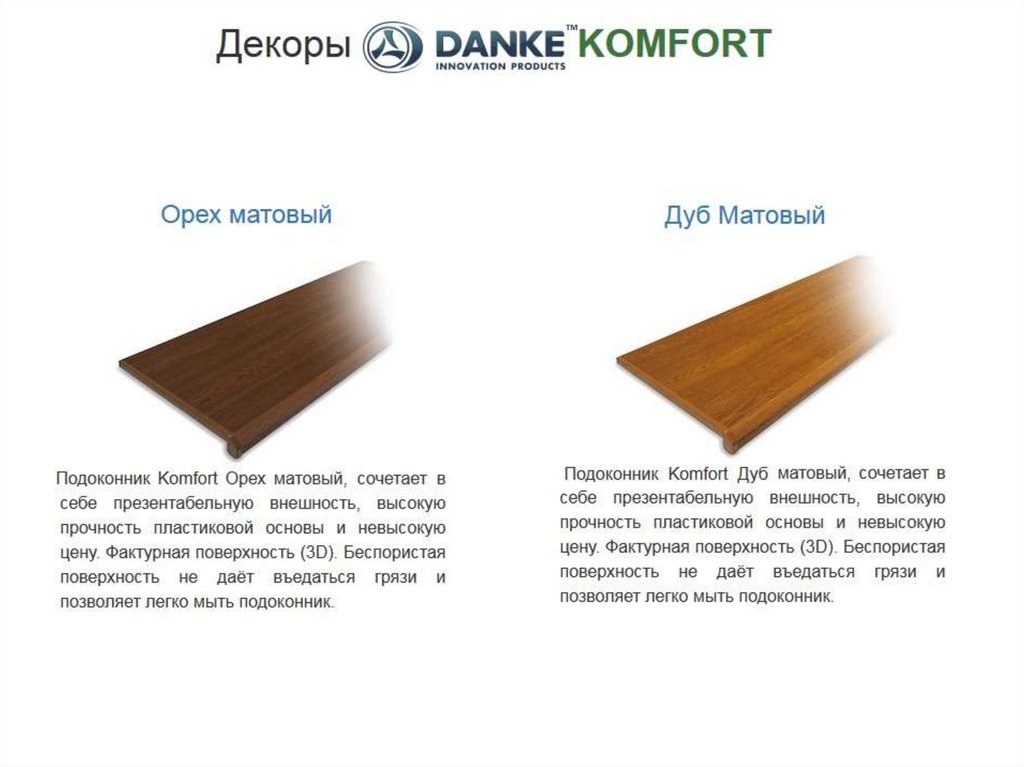 до предельно малого уровня. Как и все наши остальные коллекции, подоконники Данке Комфорт имеют наш фирменный капинос,