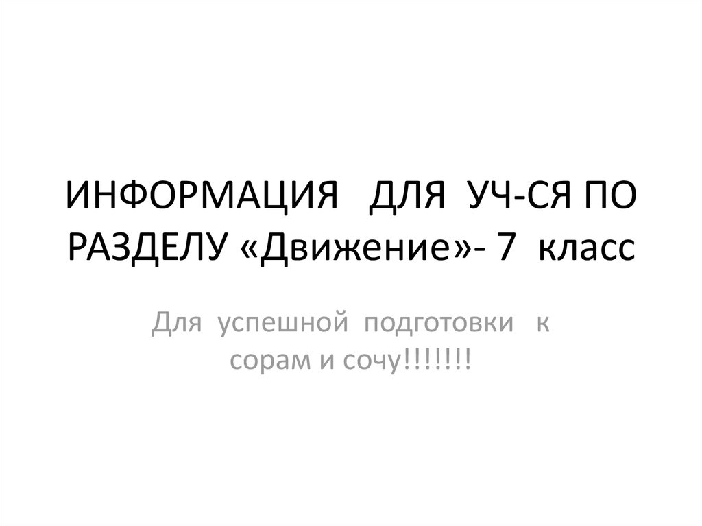 Информация для учащихся по разделу «Движение». 7 класс