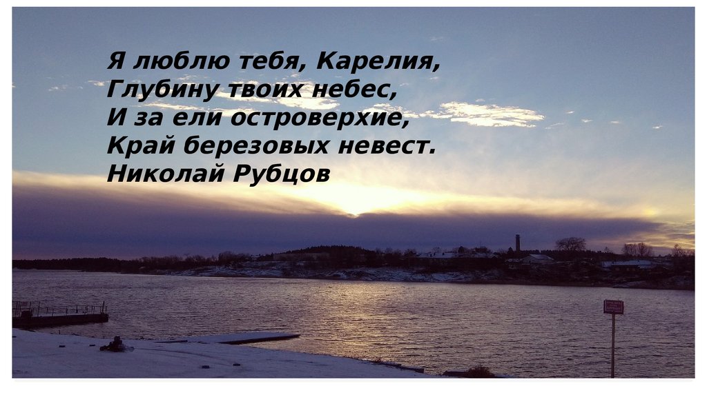 Я люблю тебя, Карелия,Глубину твоих небес,