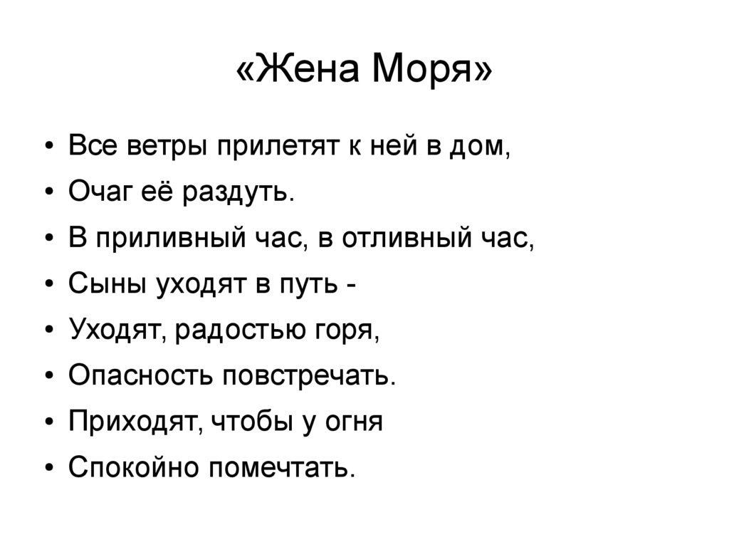«Жена Моря»Все ветры прилетят к ней в дом,