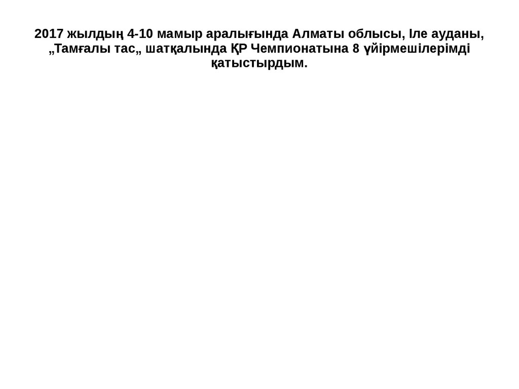 2017 жылдың 4-10 мамыр аралығында Алматы облысы, Іле ауданы,„Тамғалы тас„ шатқалында ҚР Чемпионатына 8 үйірмешілерімді