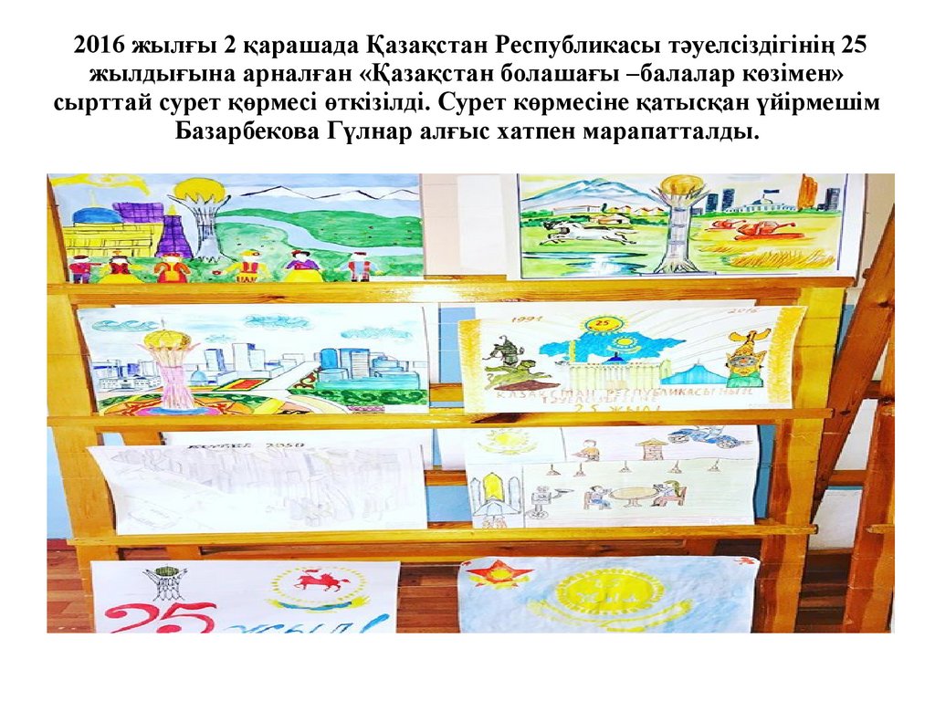 2016 жылғы 2 қарашада Қазақстан Республикасы тәуелсіздігінің 25жылдығына арналған «Қазақстан болашағы –балалар көзімен»