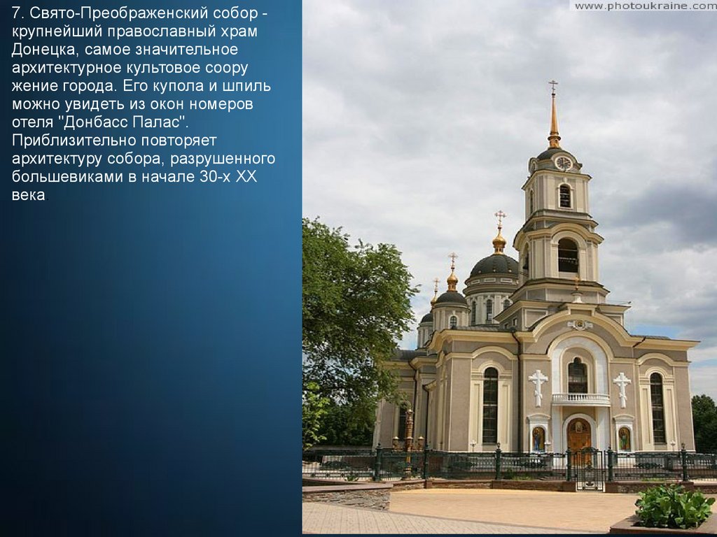 7. Свято-Преображенский собор крупнейший православный храмДонецка, самое значительное