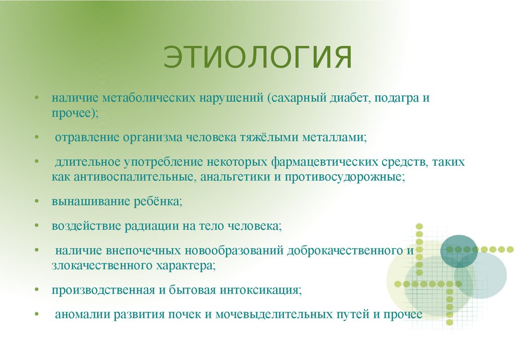 ЭТИОЛОГИЯналичие метаболических нарушений (сахарный диабет, подагра и