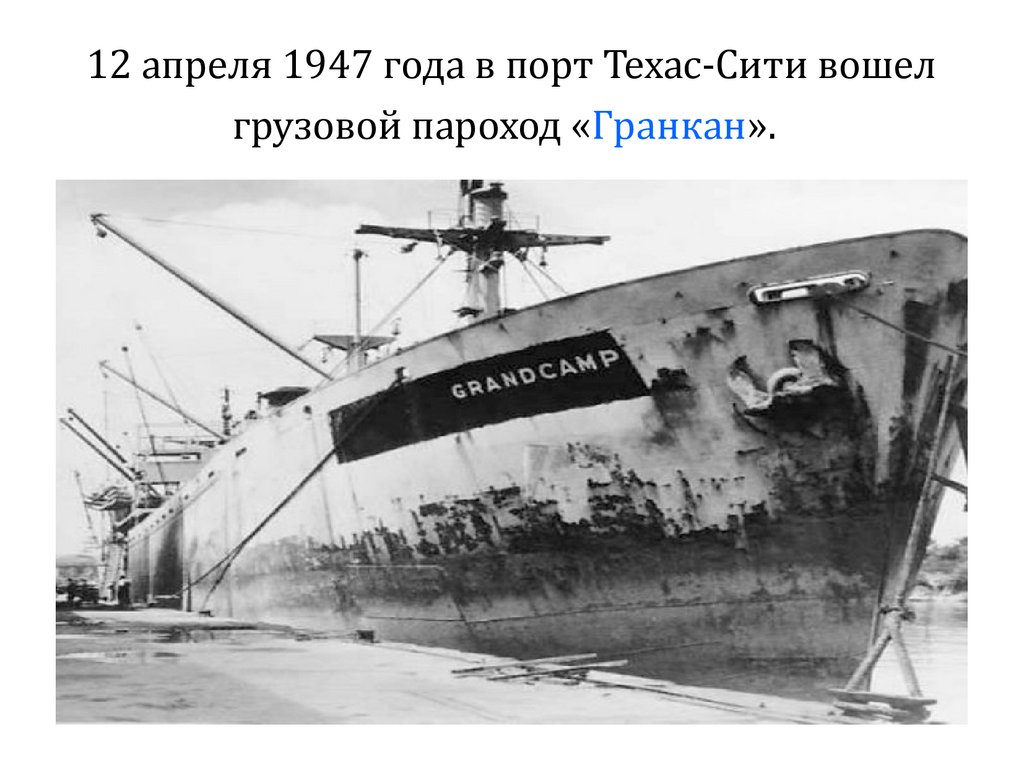 12 апреля 1947 года в порт Техас-Сити вошелгрузовой пароход «Гранкан».