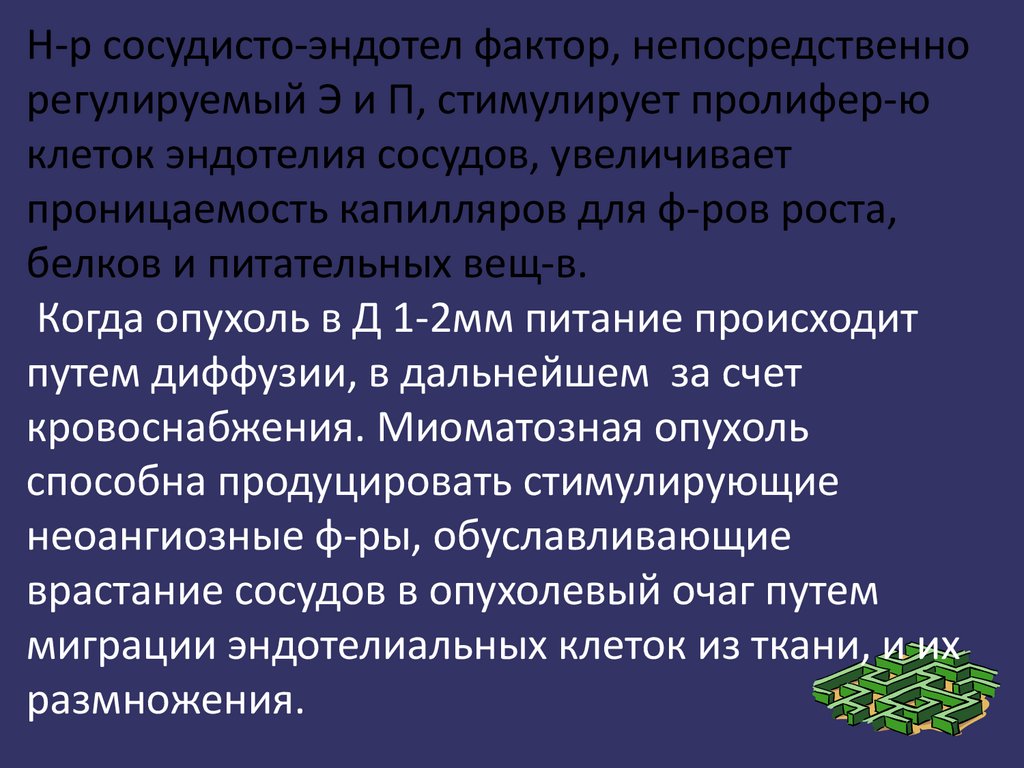 пролифер-я эндом-я и клеток миомат-х узлов.