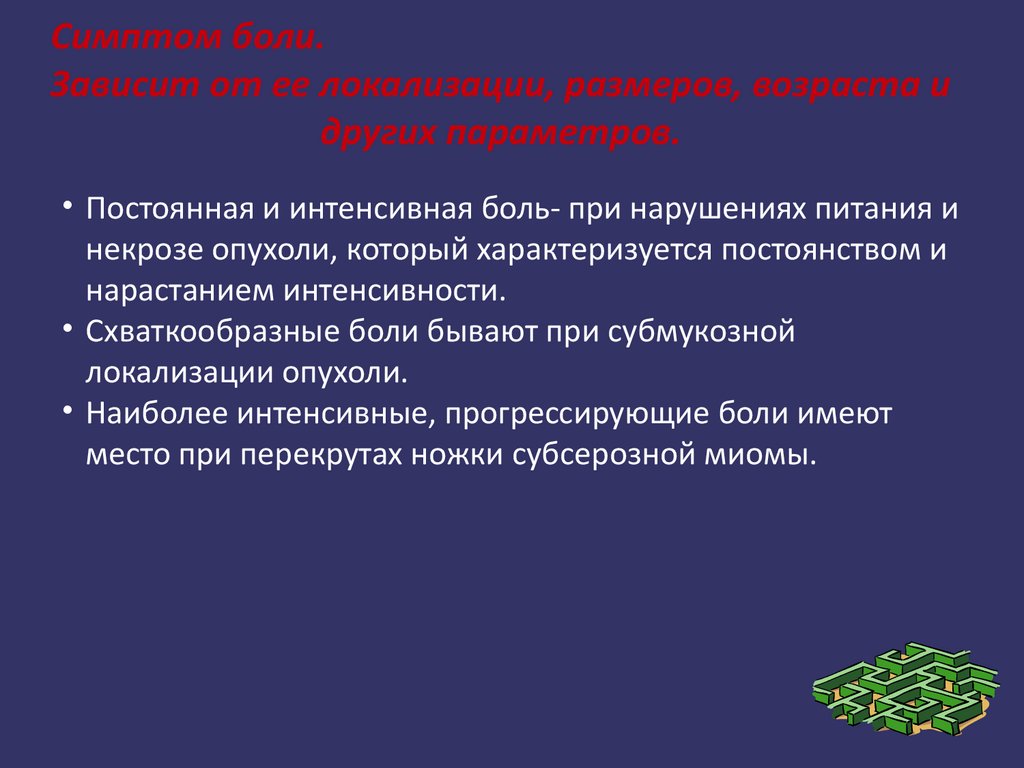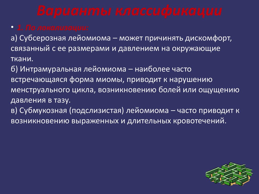 Миома М. – это доброкачеств-ая гормонозавая опухоль, исходящая из гладкоймускулатуры матки.