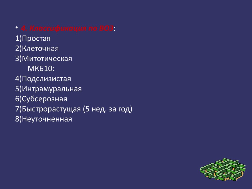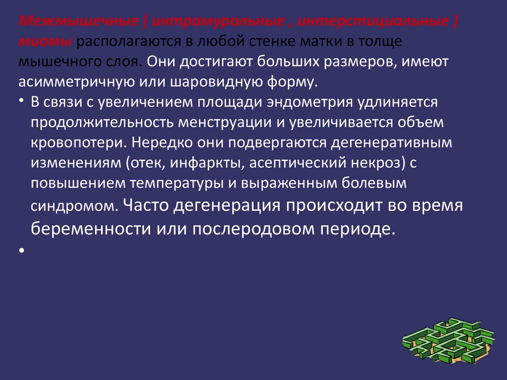 • Лейомиома – клубок гладкомышечныхволокон хаотично переплетенных м/у собой