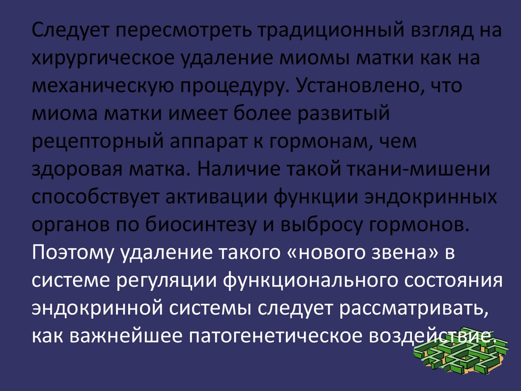 Патогенез лейомиомыСущ-ют много теорий: иммунолог-ая,