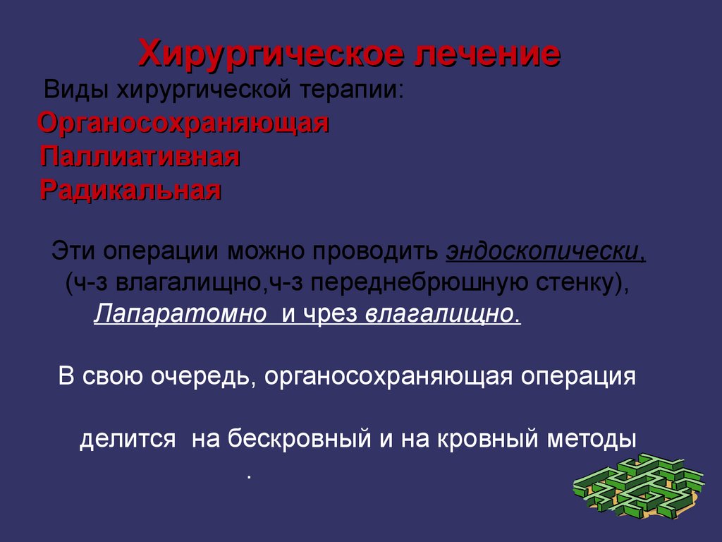 К радикальному хирург. лечениюотносятся гистерэктомия,