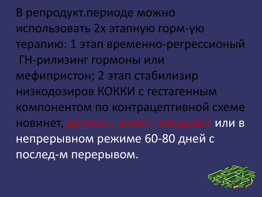 В репродукт.периоде можноиспользовать 2х этапную горм-ую