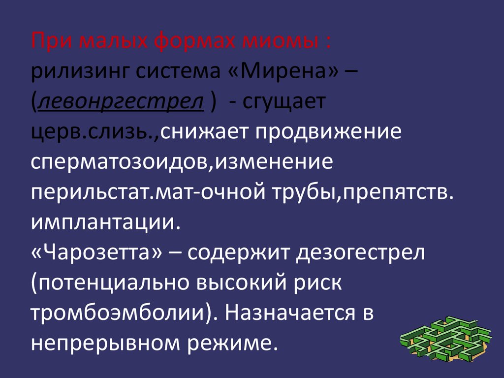Мефипристон 50мг ×1р в день.-3 мес.Обладает антипрогест. и