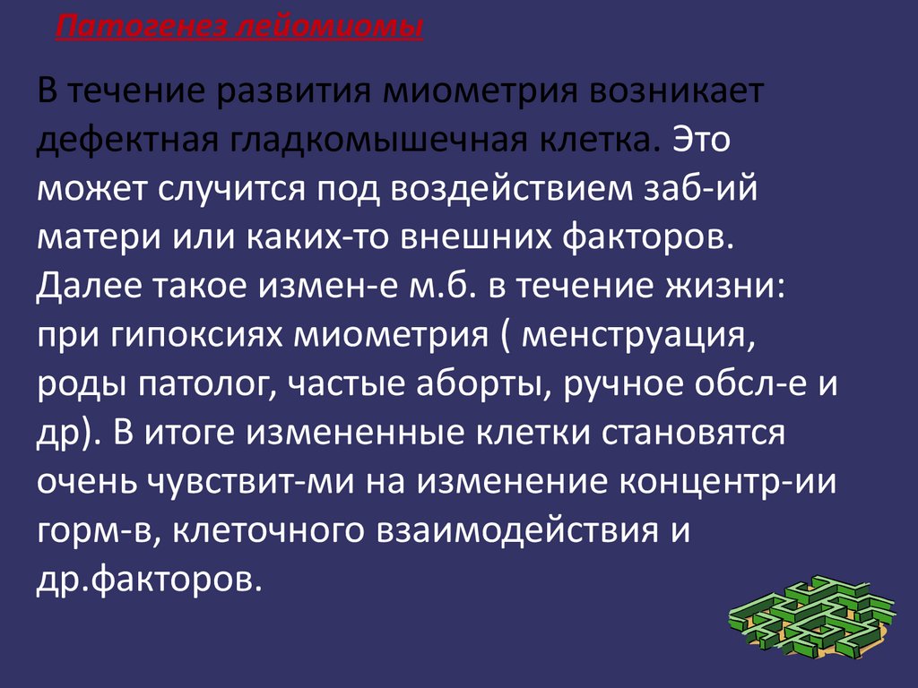 Патогенез лейомиомыВ течение развития миометрия возникает