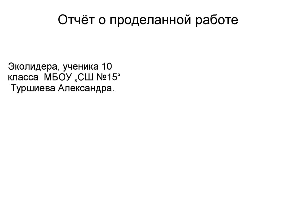 Отчёт подготовил ученик, эколидер 10класса МБОУ "СШ№15" п.Яблоновского