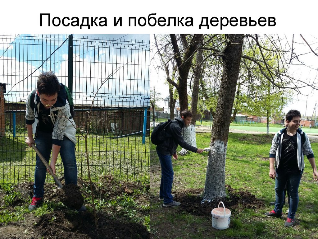 Посадка и побелка деревьев;