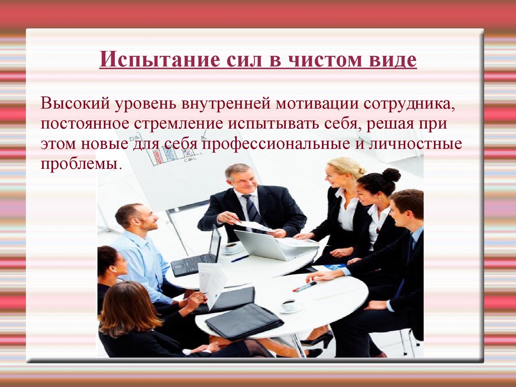 Испытание сил в чистом видеВысокий уровень внутренней мотивации сотрудника,