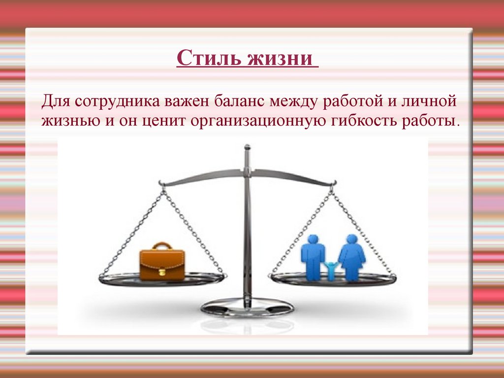 Стиль жизниДля сотрудника важен баланс между работой и личной