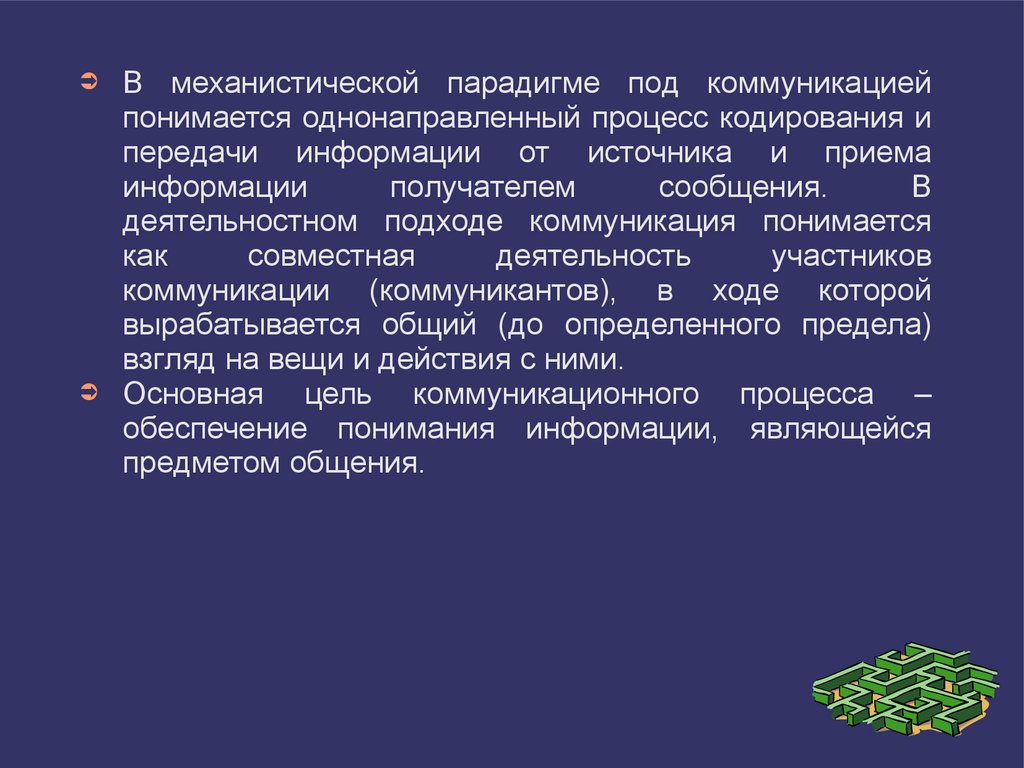 В механистической парадигме под коммуникацией