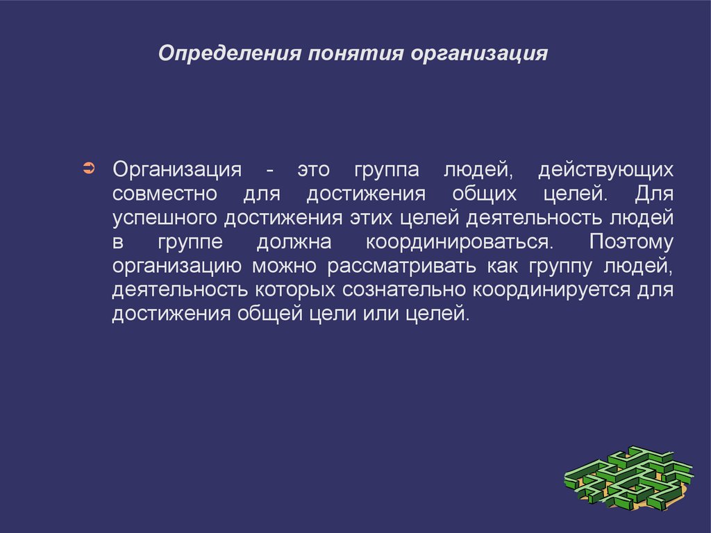 Определения понятия организация➲