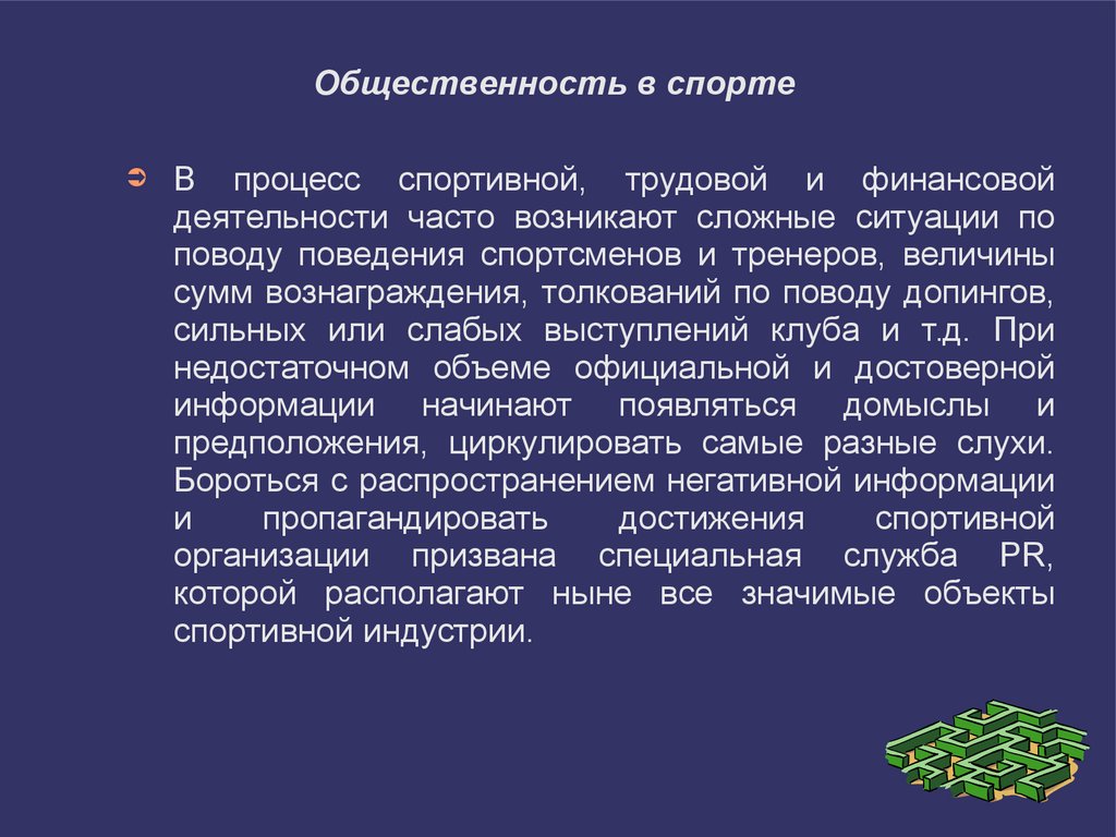 культуры и спорта. Связи с общественностью в спорте