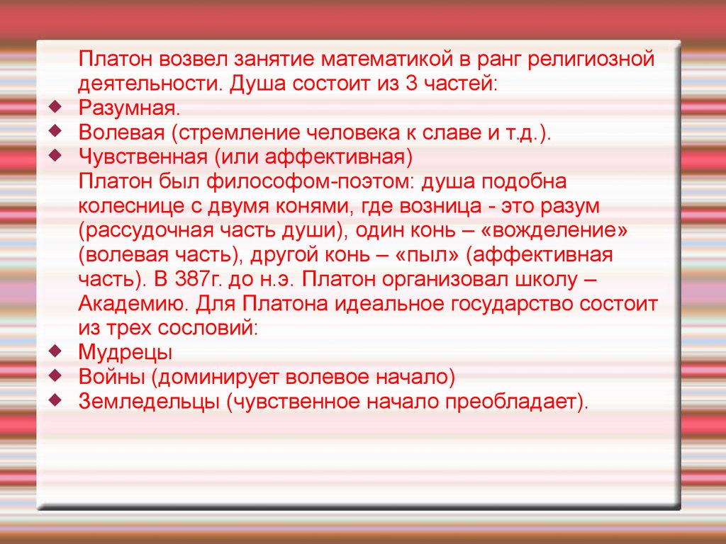 Платон возвел занятие математикой в ранг религиозной