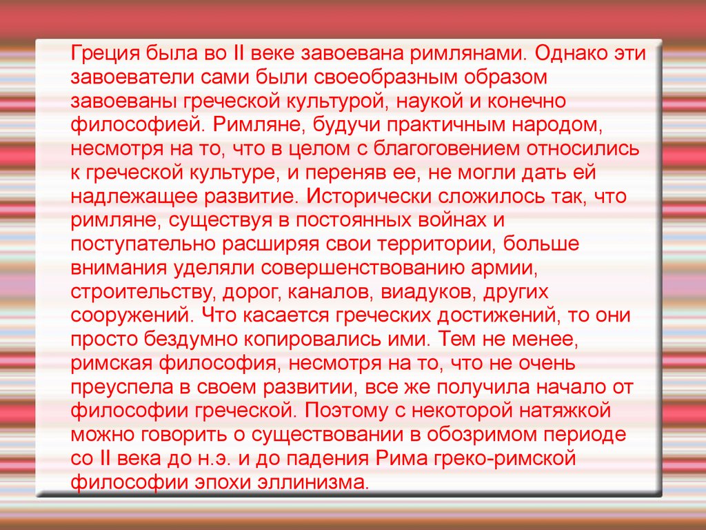философией. Римляне, будучи практичным народом,