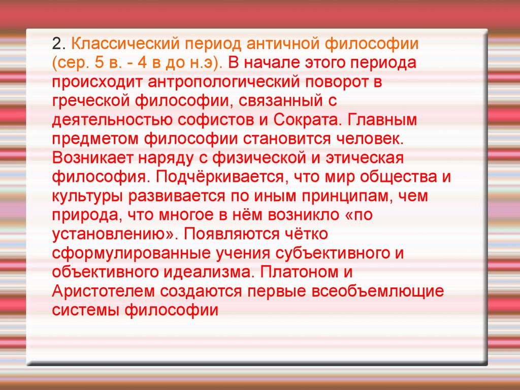 2. Классический период античной философии(сер. 5 в. - 4 в до н.э). В начале этого периода