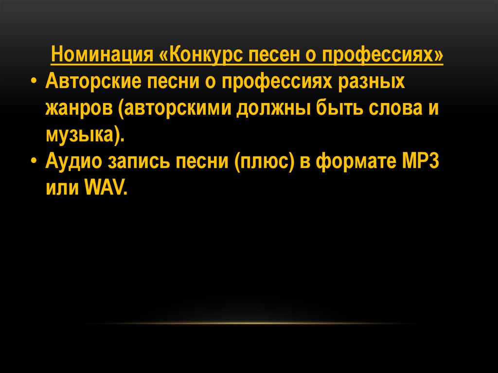 Номинация «Конкурс песен о профессиях»• Авторские песни о профессиях разных
