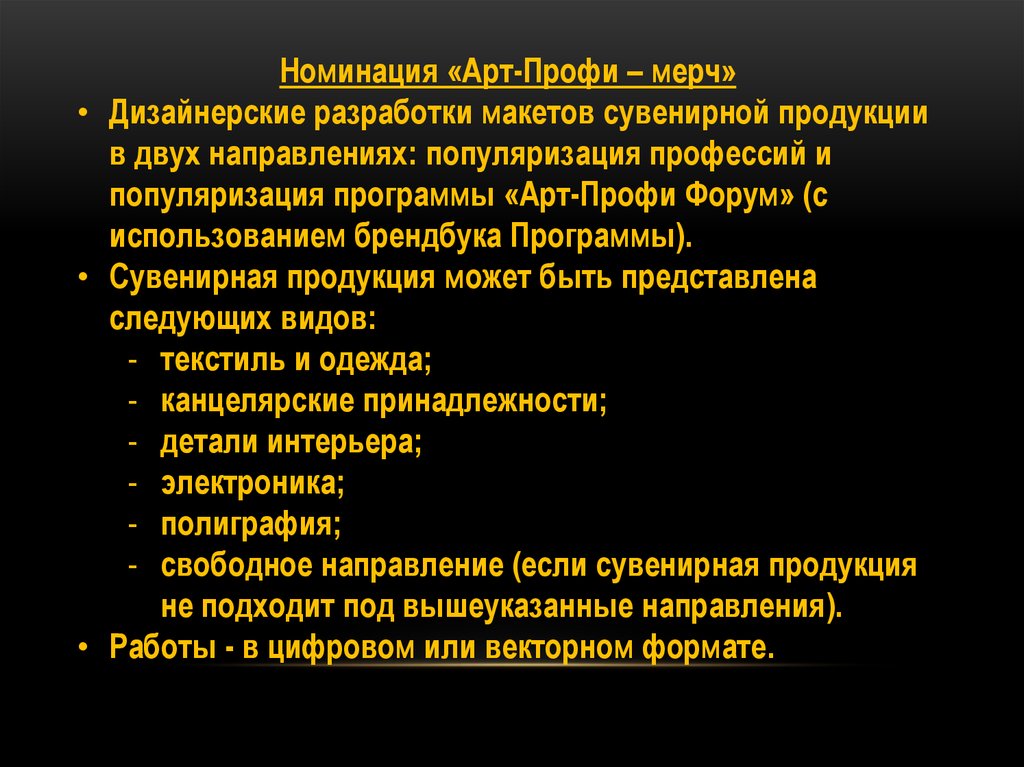 Номинация «Арт-Профи – мерч»• Дизайнерские разработки макетов сувенирной продукции