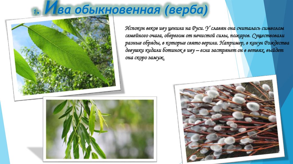 Испокон веков иву ценили на Руси. У славян она считалась символомсемейного очага, оберегом от нечистой силы, пожаров. Существовали