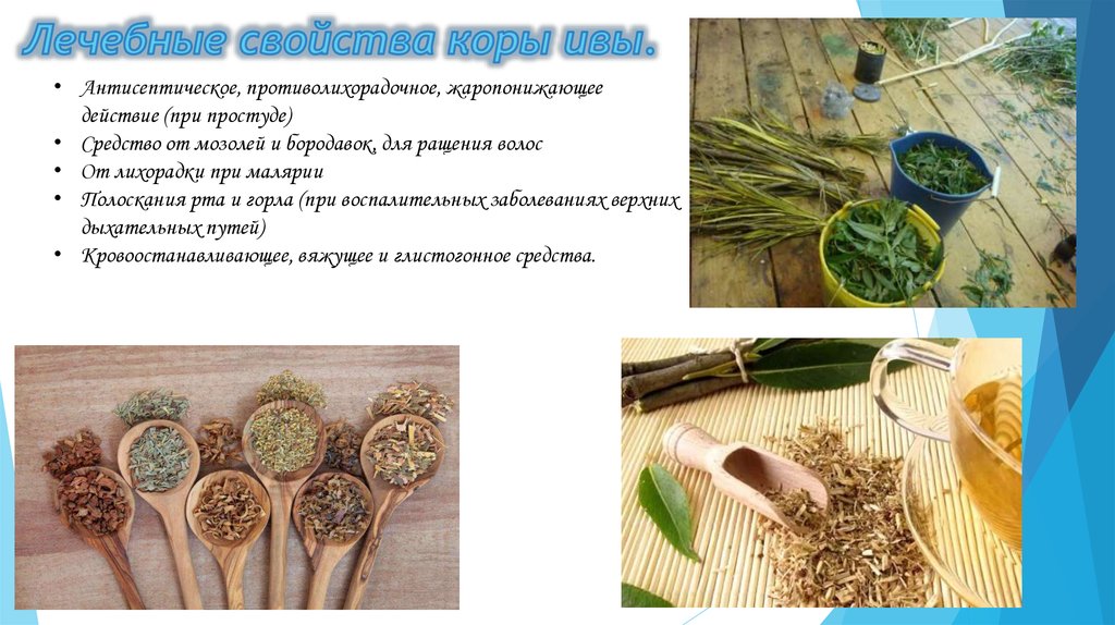 Кора ивы обладает ценными лечебнымисвойствами благодаря своему богатому