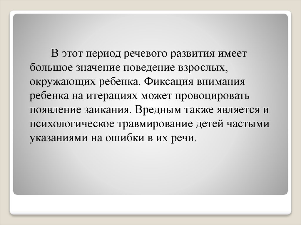 В этот период речевого развития имеетбольшое значение поведение взрослых,