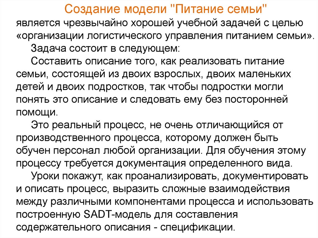 Модель "Питание семьи»• "Питание семьи". Выбор именно этой задачи базировался