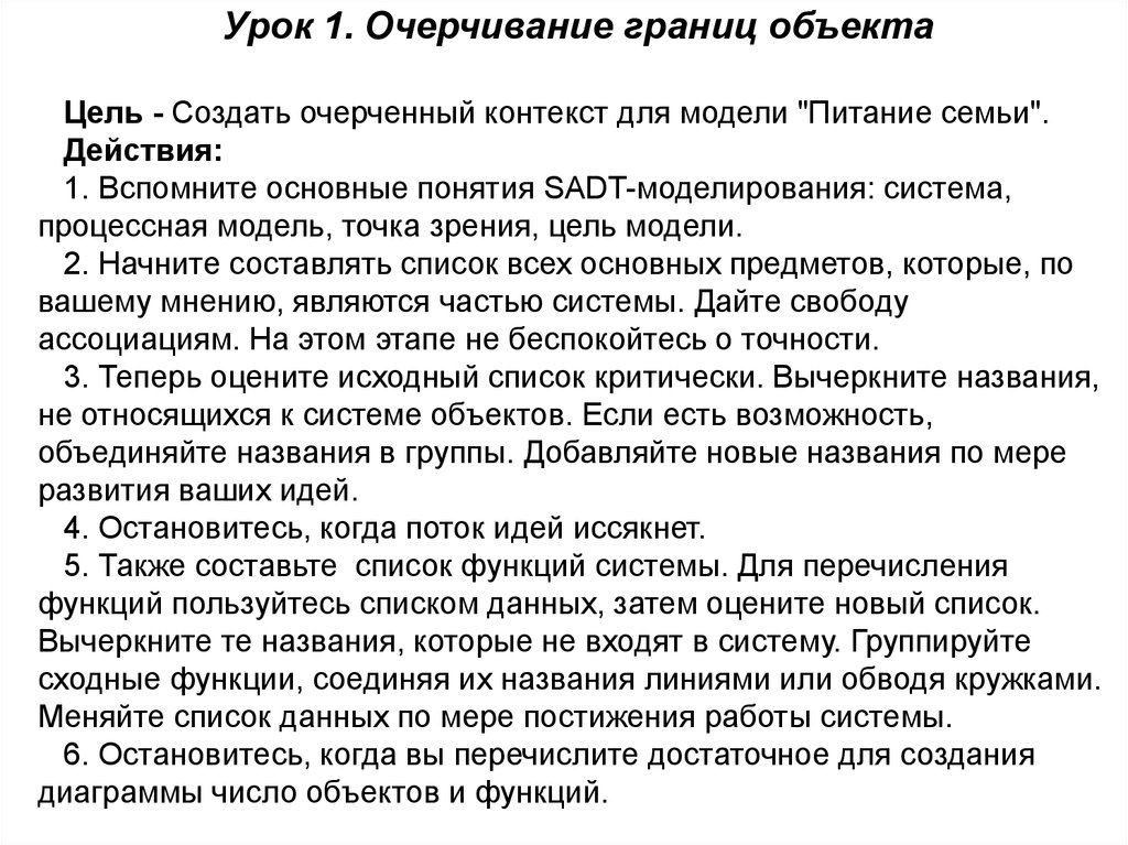 Урок 1. Очерчивание границ объектаЦель - Создать очерченный контекст для модели "Питание семьи".