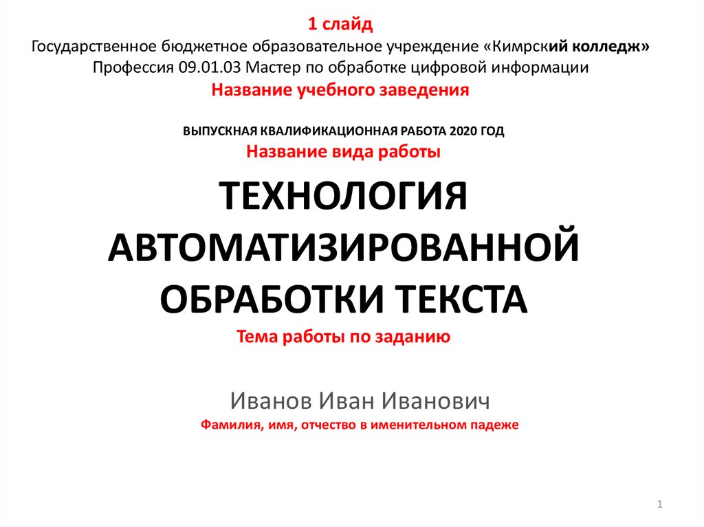 ВКР: Технология автоматизированной обработки текста. Шаблон