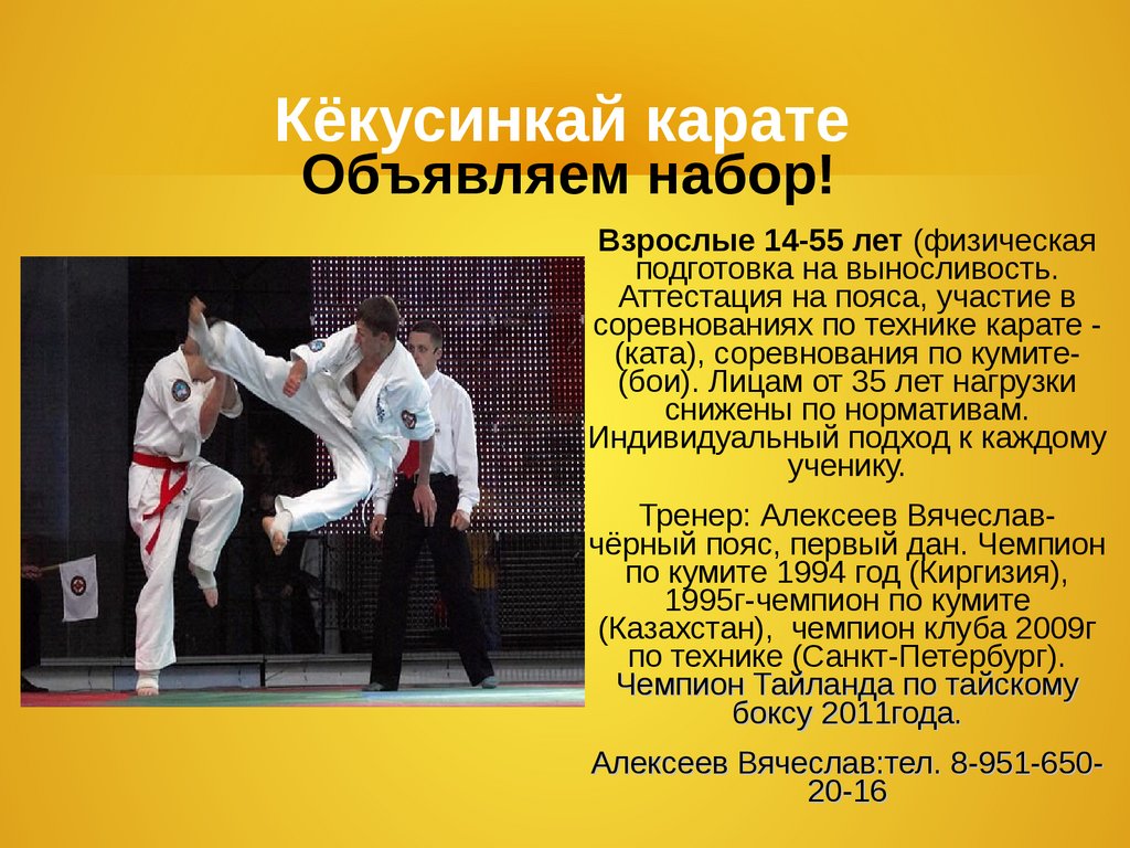Тренер: Алексеев Вячеславчёрный пояс, первый дан. Чемпион