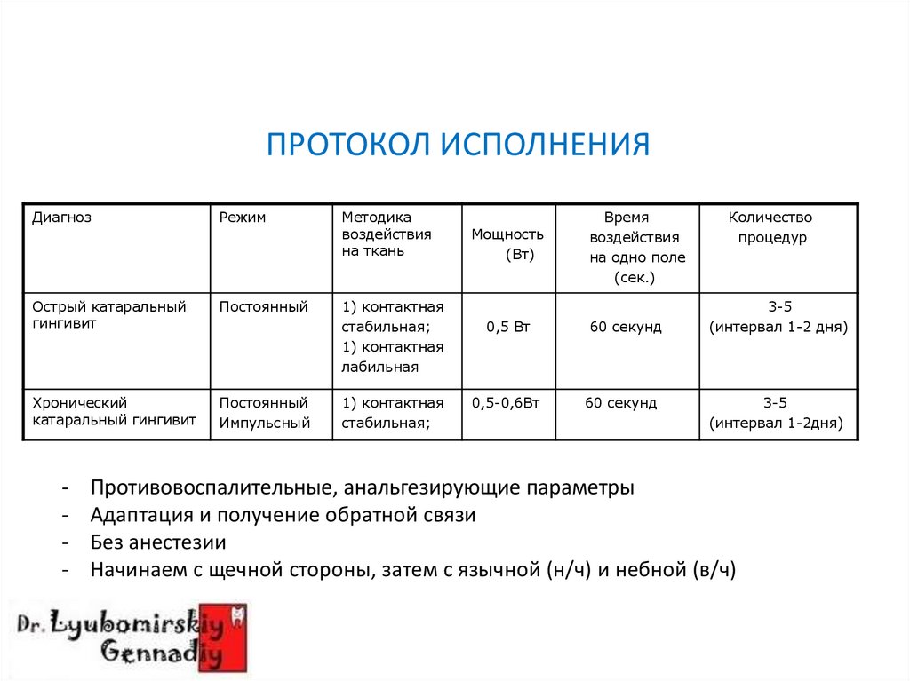 ОБЩИЙ регламент работы диодноголазера в процессе эндодонтического
