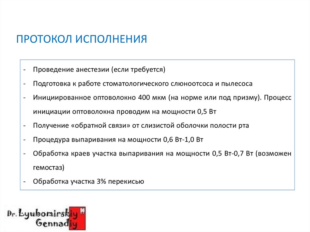 ОБРАБОТКА ЗУБНЫХ ОТЛОЖЕНИЙПРОТОКОЛ ИСПОЛНЕНИЯ
